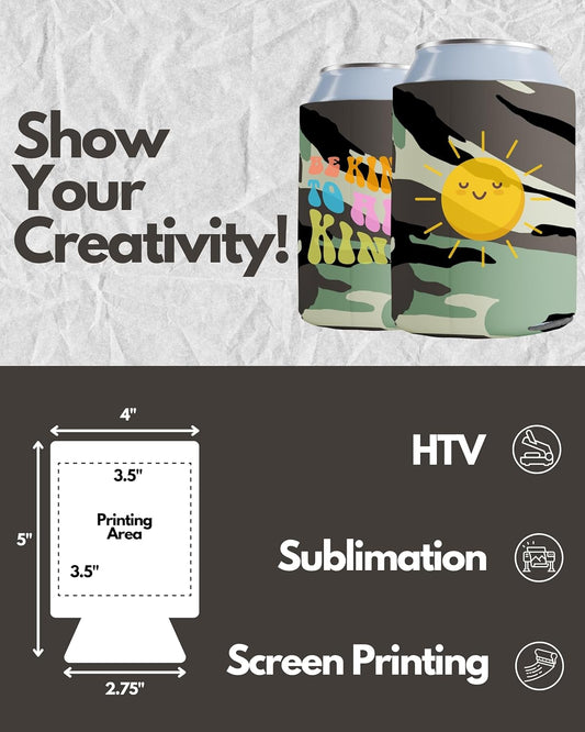 • 100 Pack Camo Blank Can Cooler Sleeves, Customizable Bulk Insulated Foam for Beer, Collapsible Plain Drink Holder, Cold Soda Insulator, 12Oz Regular, 16Oz Tall Cans