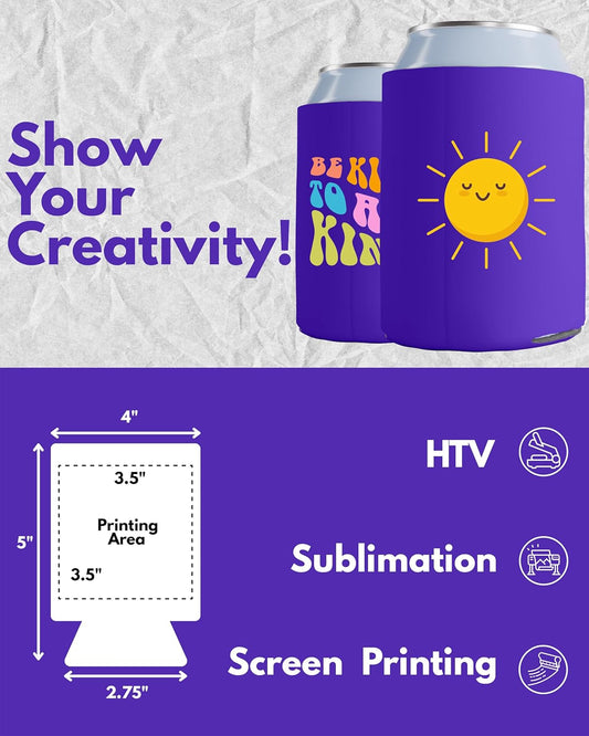 • 100 Pack Purple Blank Can Cooler Sleeves, Customizable Bulk Insulated Foam for Beer, Collapsible Plain Drink Holder, Cold Soda Insulator, 12Oz Regular, 16Oz Tall Cans