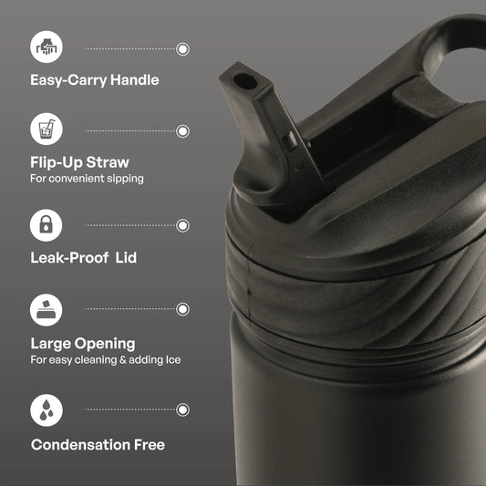 Stainless Steel Ranger Water Bottle with Easy Sip Straw 26 Oz, Black
