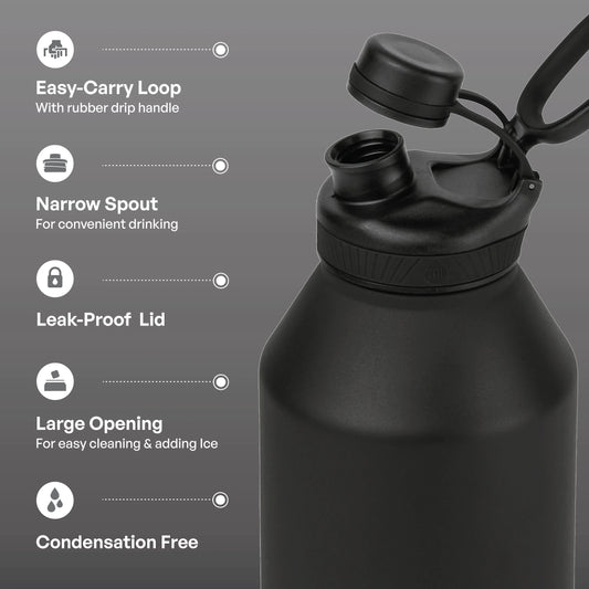 Stainless Steel Ranger Water Bottle 64Oz, Black
