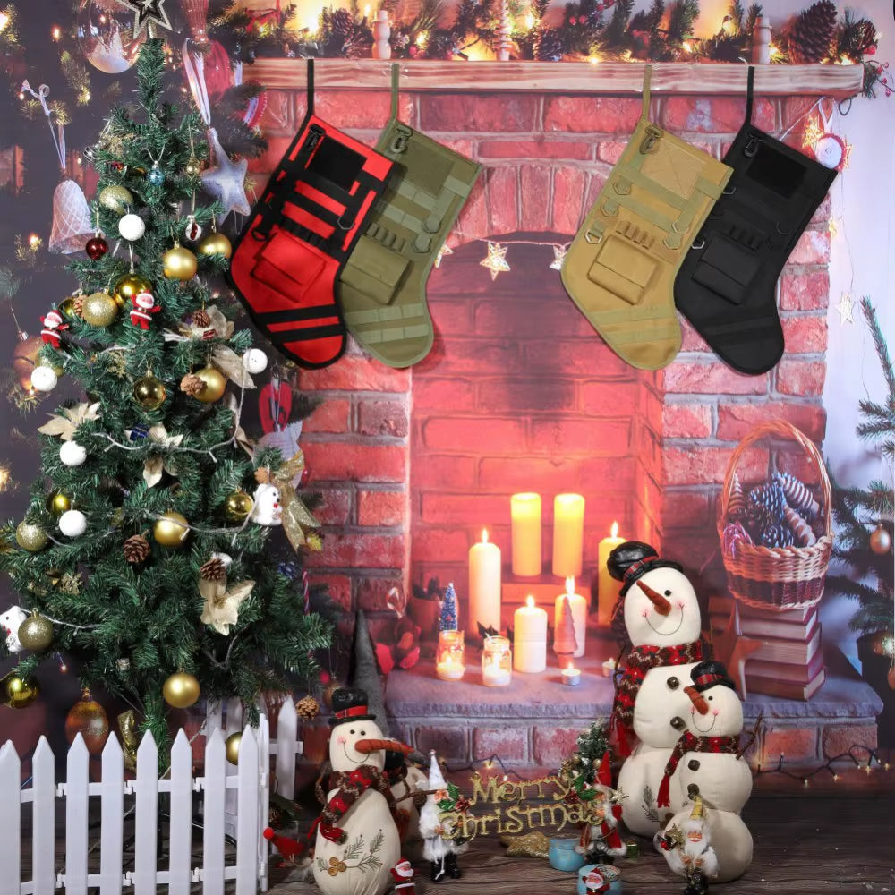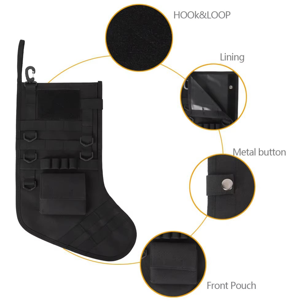 1000D Nylon Hanging Tactical Christmas Gift Socks Outdoor Sports Molle Storage Bag Christmas Stocking for Xmas Tree Pendant
